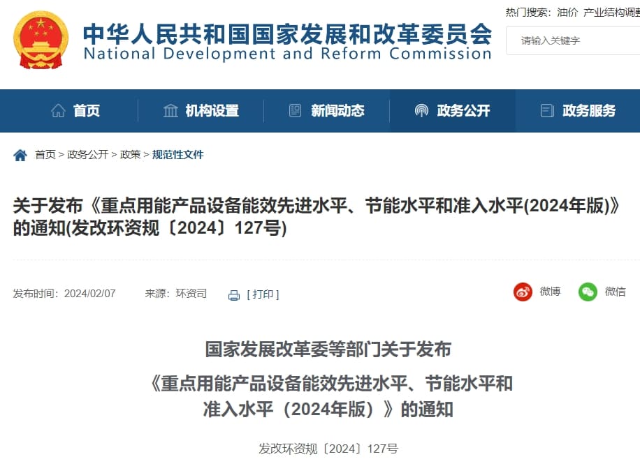 在今年2月,國家發展改革委等部門印發了《重點用能產品設備能效先進水平、節能水平和準入水平(2024年版)》的通知,其中明確了在原有的設備基礎上,再新增23種產品設備或設施,基本實現重點用能產品設備全覆蓋,進一步支撐重點領域節能減排降碳。