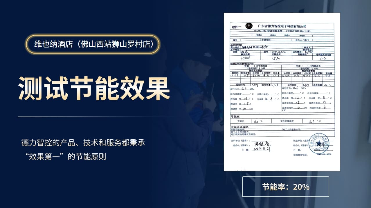 近期,德力智控為佛山市一維也納酒店節能改造實地打樣,節能率20%!