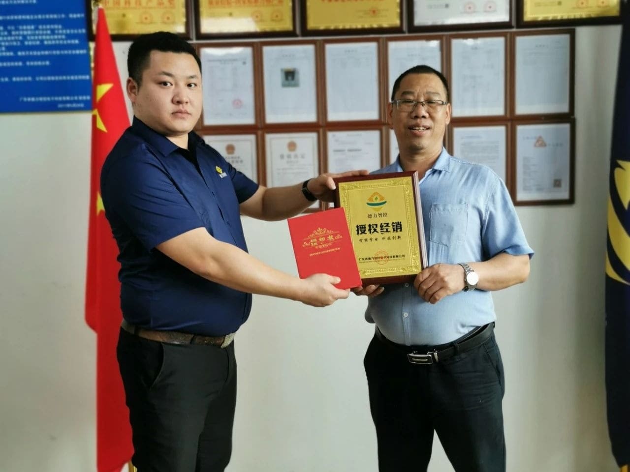 2020年伴隨著我司德力智控品牌影響力提升和產品效果的呈現,我司德力智控總公司簽約不斷,喜訊接踵而至。中山市橫欄鎮的經銷商胡總,經過一段時間的雙方共同考察空調節能市場,終于與我司德力智控簽訂了加盟合同。