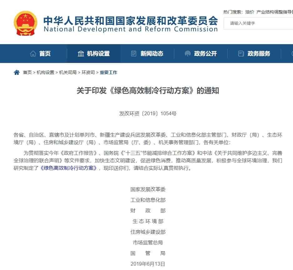 2019年,國家發改委等八部門印發《綠色高效行動制冷方案》了,其中就指出:要求大型公共建筑制冷總體能效水平提升25%以上,綠色高效制冷產品市場占有率提高 40%以上,實現年節電4000億千瓦時左右。(信息來源:國家發改委等八部門印發《綠色高效制冷行動方案》)