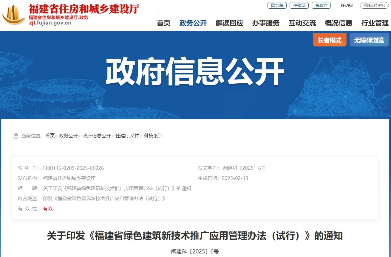 2月13日,福建省住房和城鄉建設廳印發《福建省綠色建筑新技術推廣應用管理辦法(試行)》的通知(以下簡稱:綠色建筑技術推廣)。