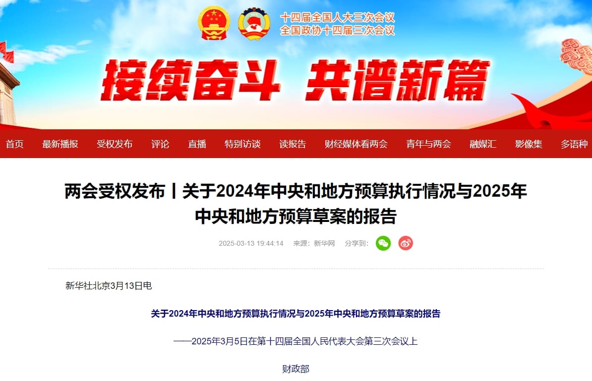 3月5日,財政部提請十四屆全國人大三次會議審查《關于2024年中央和地方預算執行情況與2025年中央和地方預算草案的報告》(以下簡稱:預算草案報告),2025年財政政策隨之揭曉。